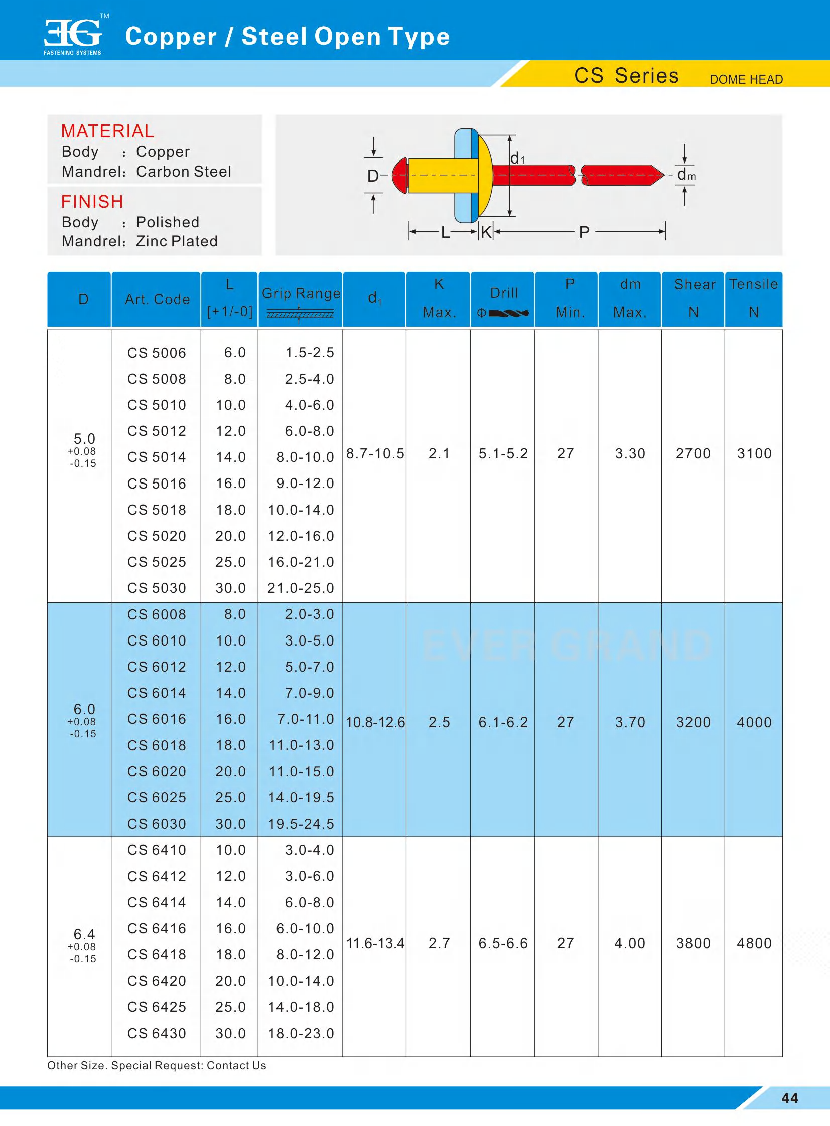 特點:①標準型②不易生銹、耐腐蝕 ③高強度,低成本④鉚接范圍廣⑤安裝簡單方便