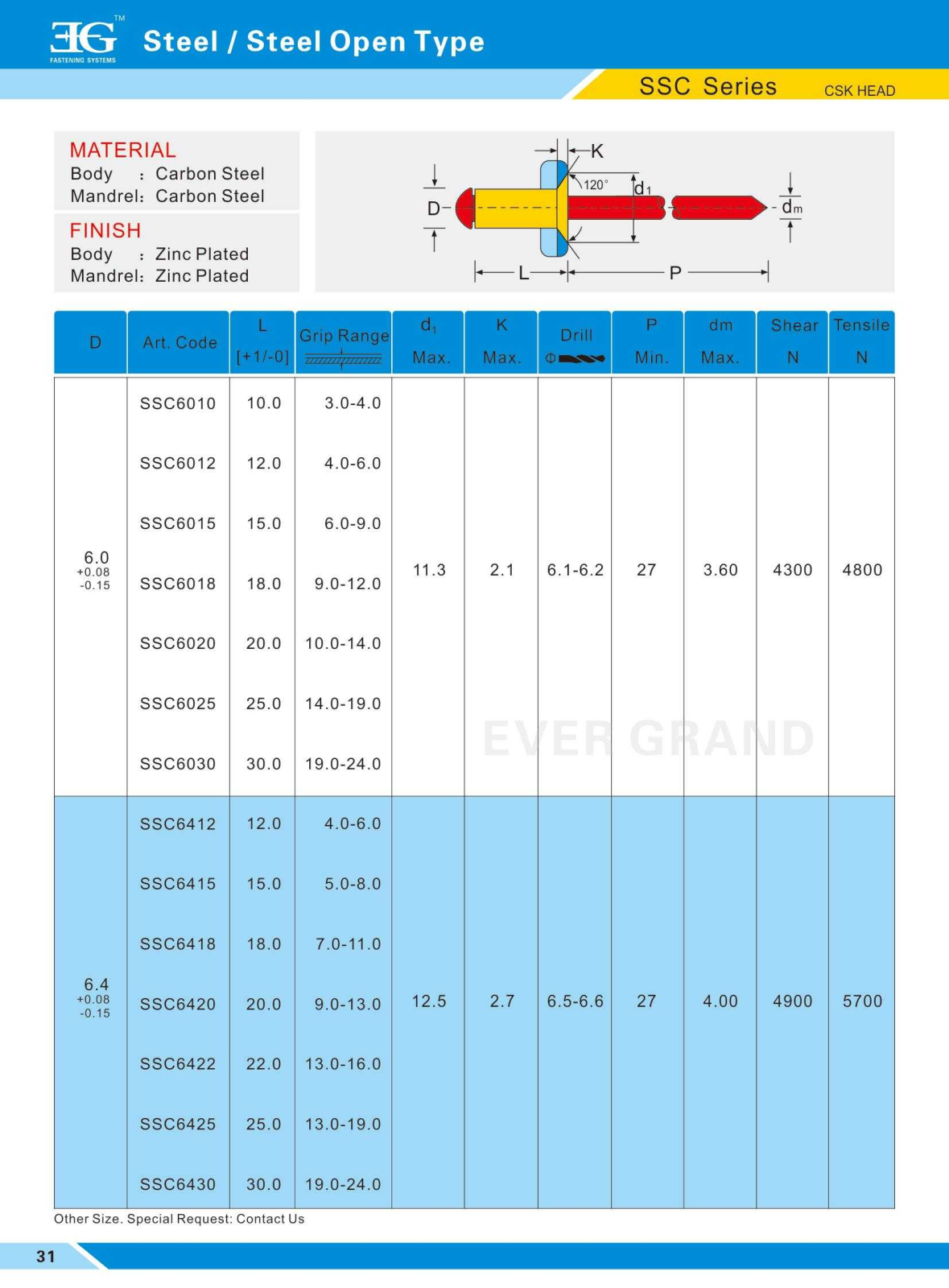 特點:①沉頭型②不易生銹、耐腐蝕 ③高強度,低成本④鉚接范圍廣⑤安裝簡單方便⑥各種顏色